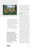Na terenach o większym stopniu nachylenia bardziej praktycznym rozwiązaniem jest karczownica traktorowa Orec RM830 (szer. robocza 82 cm) (fot. 4) z przekładnią hydrostatyczną i blokadą mechanizmu różnicowego PRO. Maszyna z kołowym układem jezdnym, napędem 2WD na tylną oś i nisko osadzonym środkiem ciężkości z łatwością porusza się zarówno po płaskim, nierównym terenie, jak i bezpiecznie pokonuje strome zbocza w górę i dół oraz miejsca błotniste. Wyposażona w wyprofilowany układ tnący o szeroko ustawionych występach służy do koszenia i rozdrabniania wysokich traw – nawet do wysokości 2 m, runa leśnego oraz karczowania bardzo gęstych zarośli, krzewów i mniejszych drzew.
